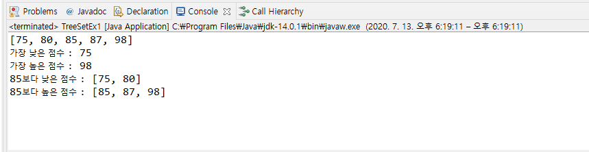System.out.println("85보다 낮은 점수 : " + set1.headSet(85)); // 비교값 비포함
