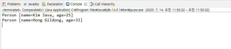 내부적으로 순서를 결정하는 메소드를 나이로 설정했기 때문에 나이 오름차순으로 정리된다.