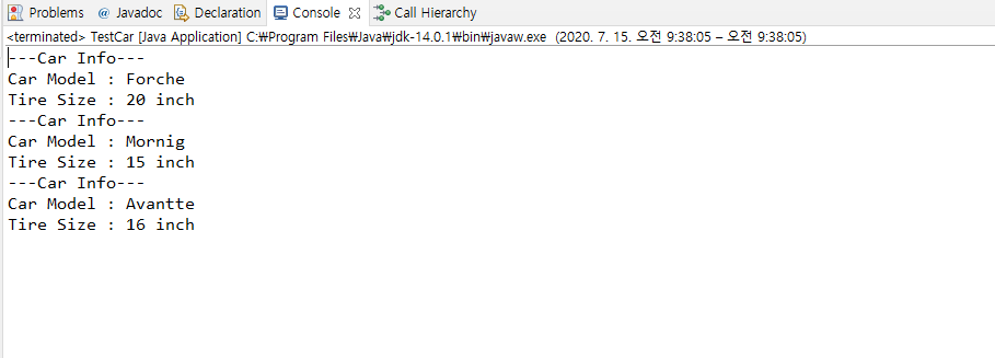System.out.println("Tire Size : " + size + " inch");