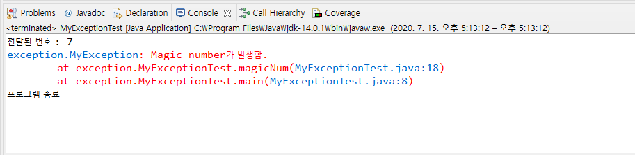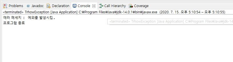 printStackTrace() 메소드를 이용하여 어디서 예외처리가 됐는지 확인할 수 있다.