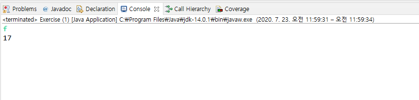 | [코드업/자바] 기초 100제 - 영문자 1개 입력받아 10진수로 출력하기 (0) | 2020.07.23 |