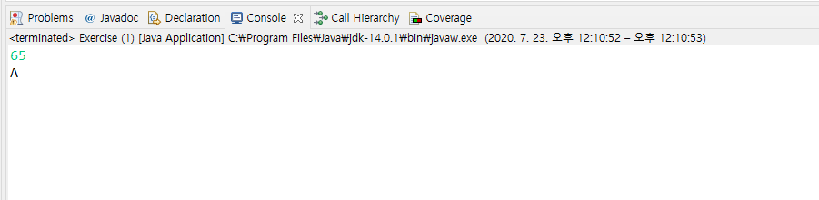 | [코드업/자바] 기초 100제 - 영문자 1개 입력받아 10진수로 출력하기 (0) | 2020.07.23 |