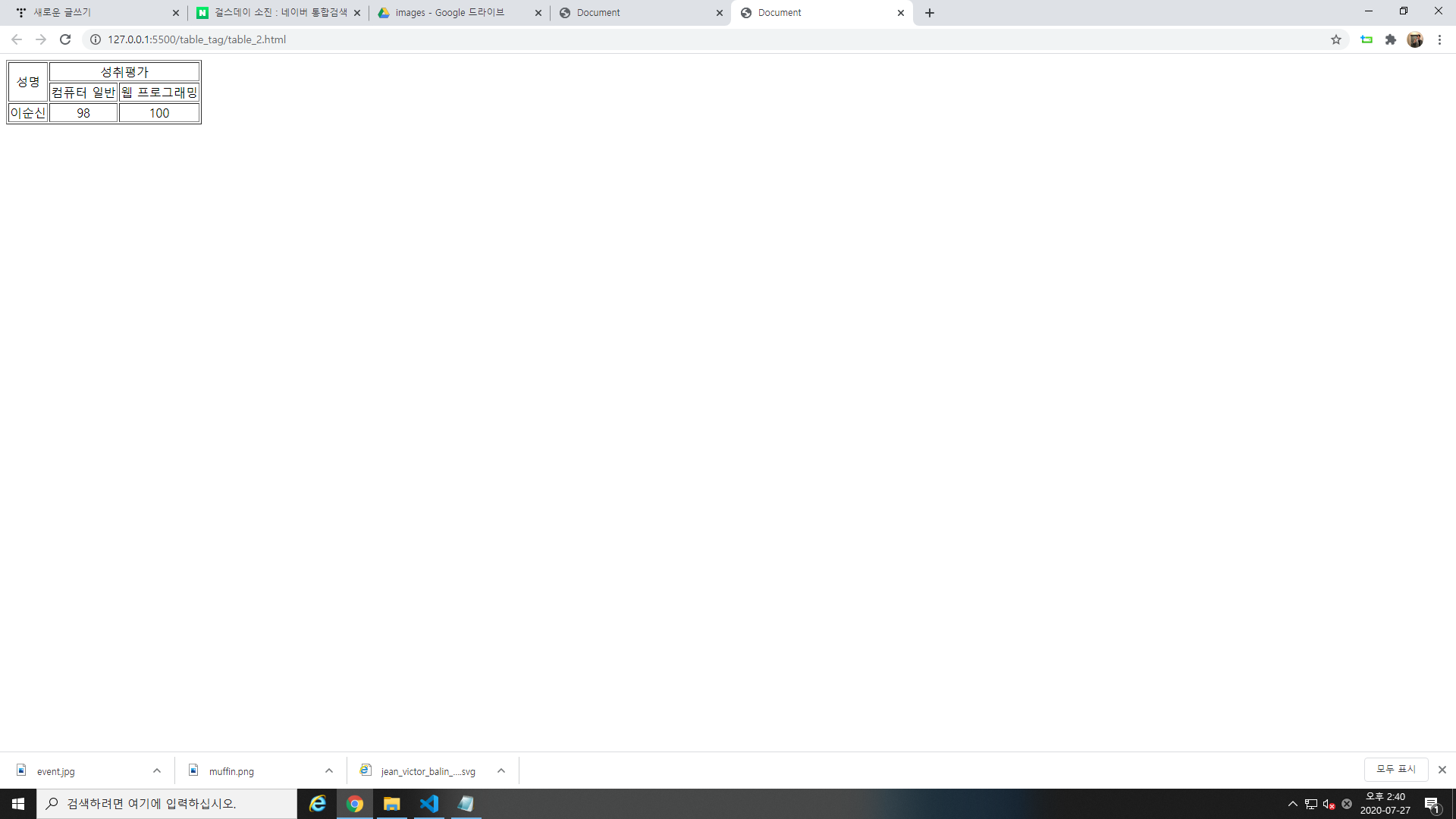 | [HTML] <table> 태그 사용해보기 - 2(colgroup) (0) | 2020.07.27 |