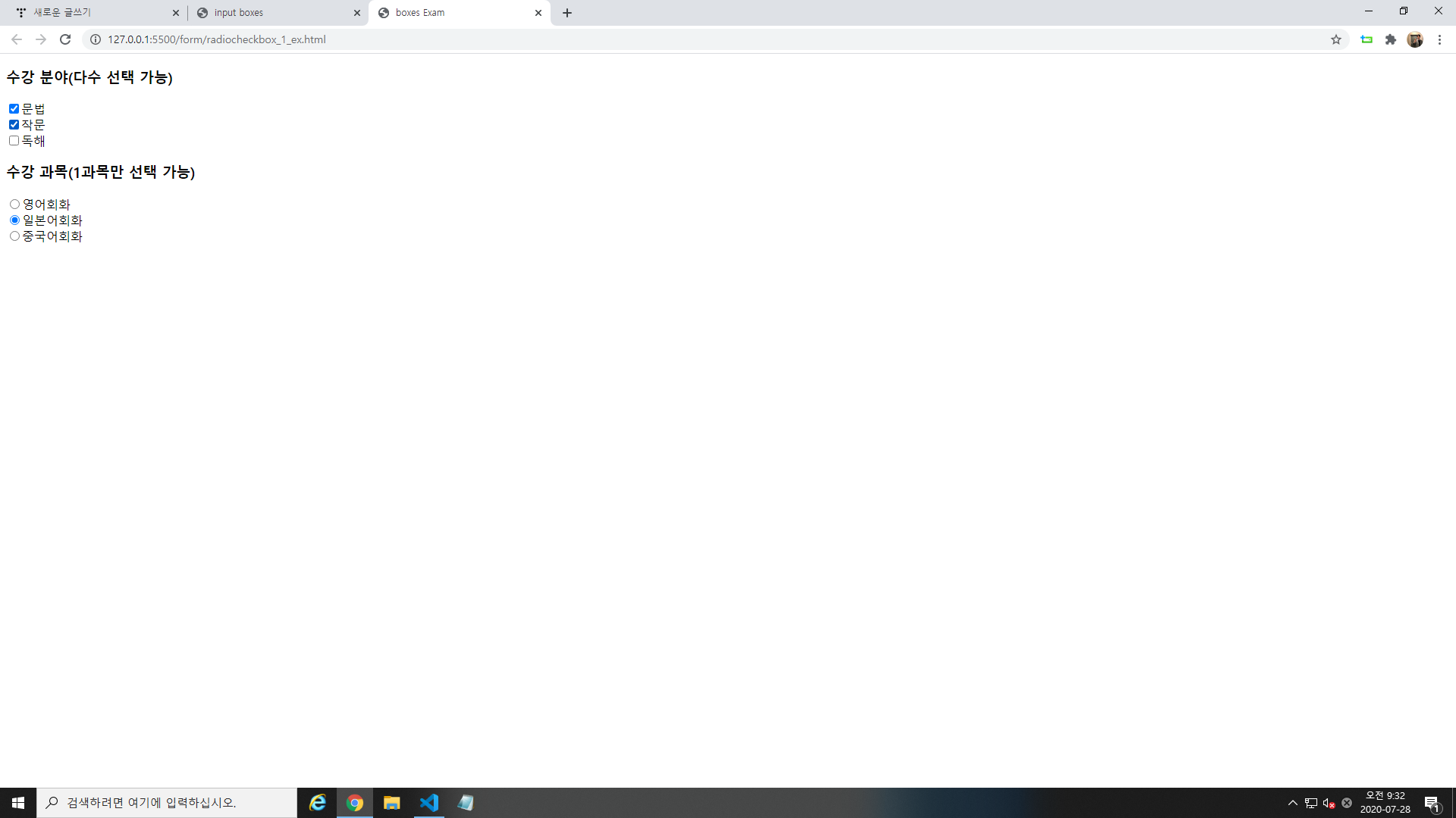 <input type="checkbox" name="class" value="grammer">문법<br>