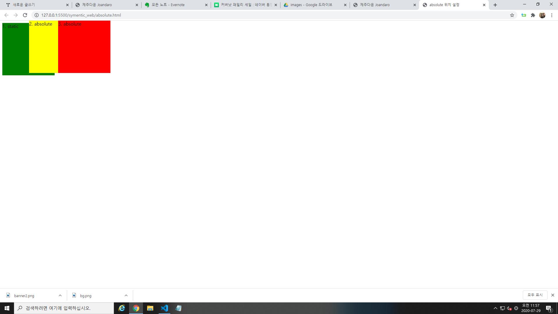 absoulte는 다른 구역과 상관없이 부모 구역 왼쪽 상단을 기준으로 배치됩니다.
