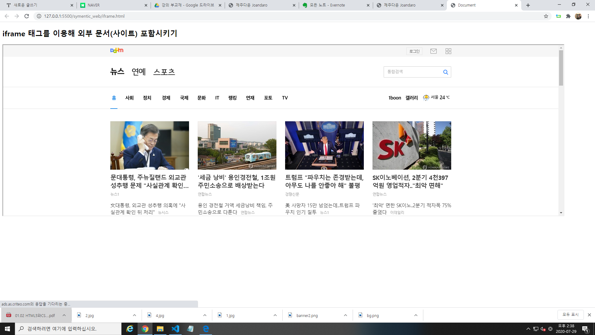 iframe 태그는 외부에 있는 페이지를 해당 페이지로 불러올 수 있다.