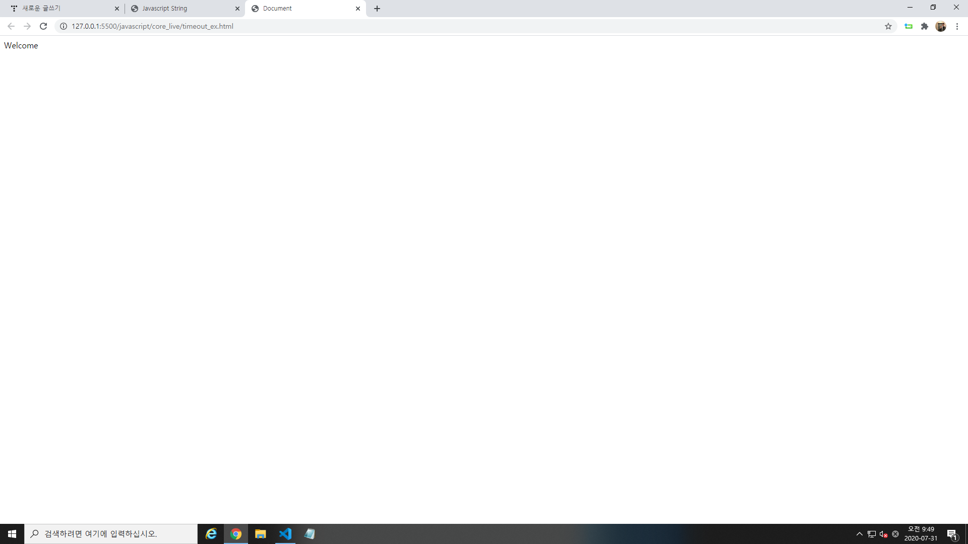 페이지가 로드되고 1초 뒤에 welcome 나타난다.