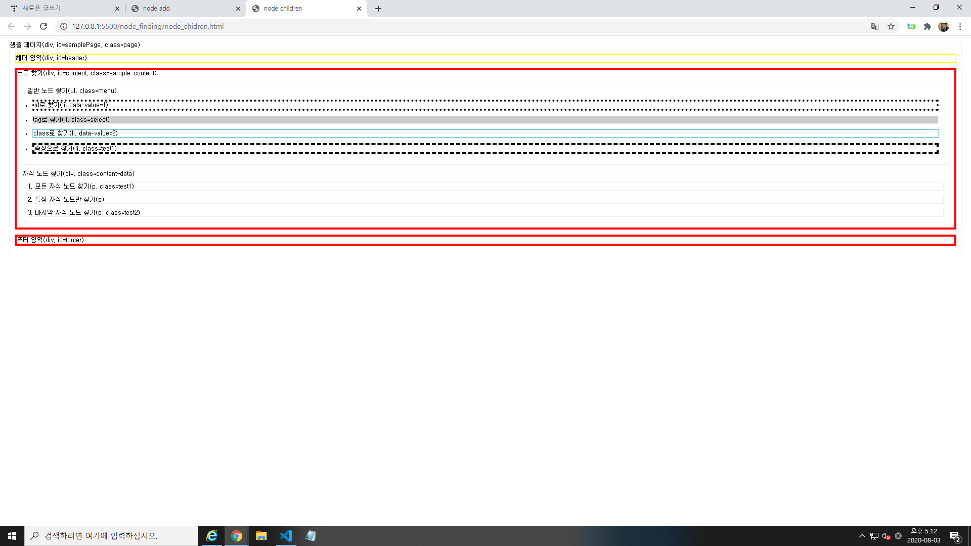 | [jQuery] 노드 찾기 - 3 (0) | 2020.08.03 |