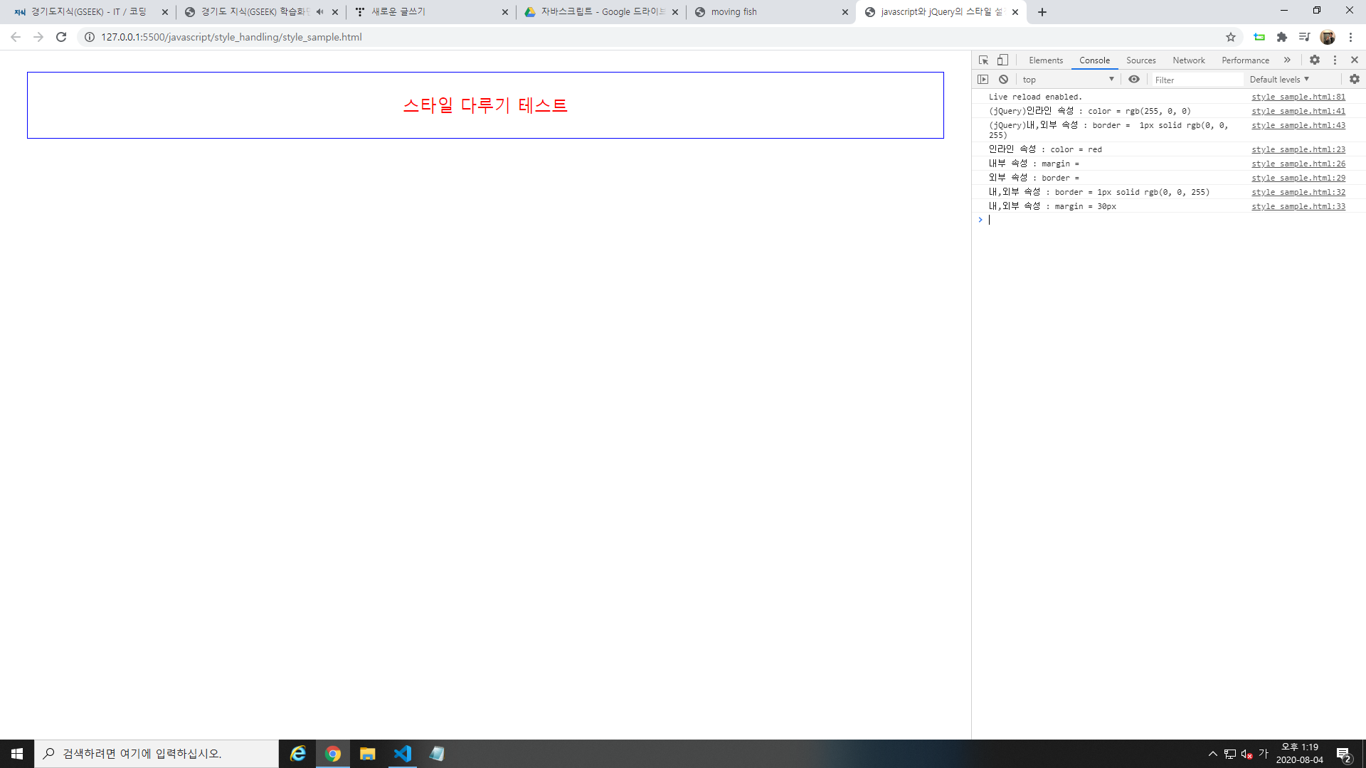 하지만 중요한 것은 자바스크립트에서는 인라인 스타일 속성만 읽어올 수 있다.