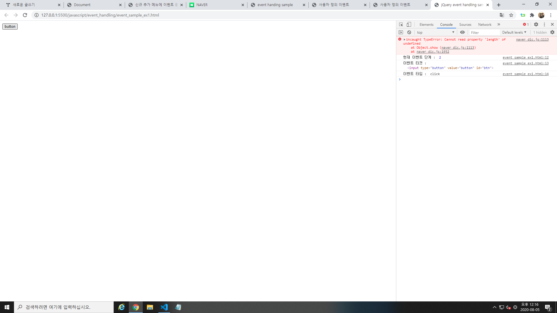 이벤트가 몇번째 단계에서 실행되는지 확인하는 스크립트를 작성해보자.