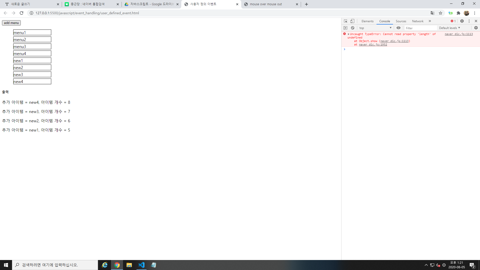 var event = jQuery.Event("addItem"); // 메뉴 항목이 추가되었다는 이벤트 정의
