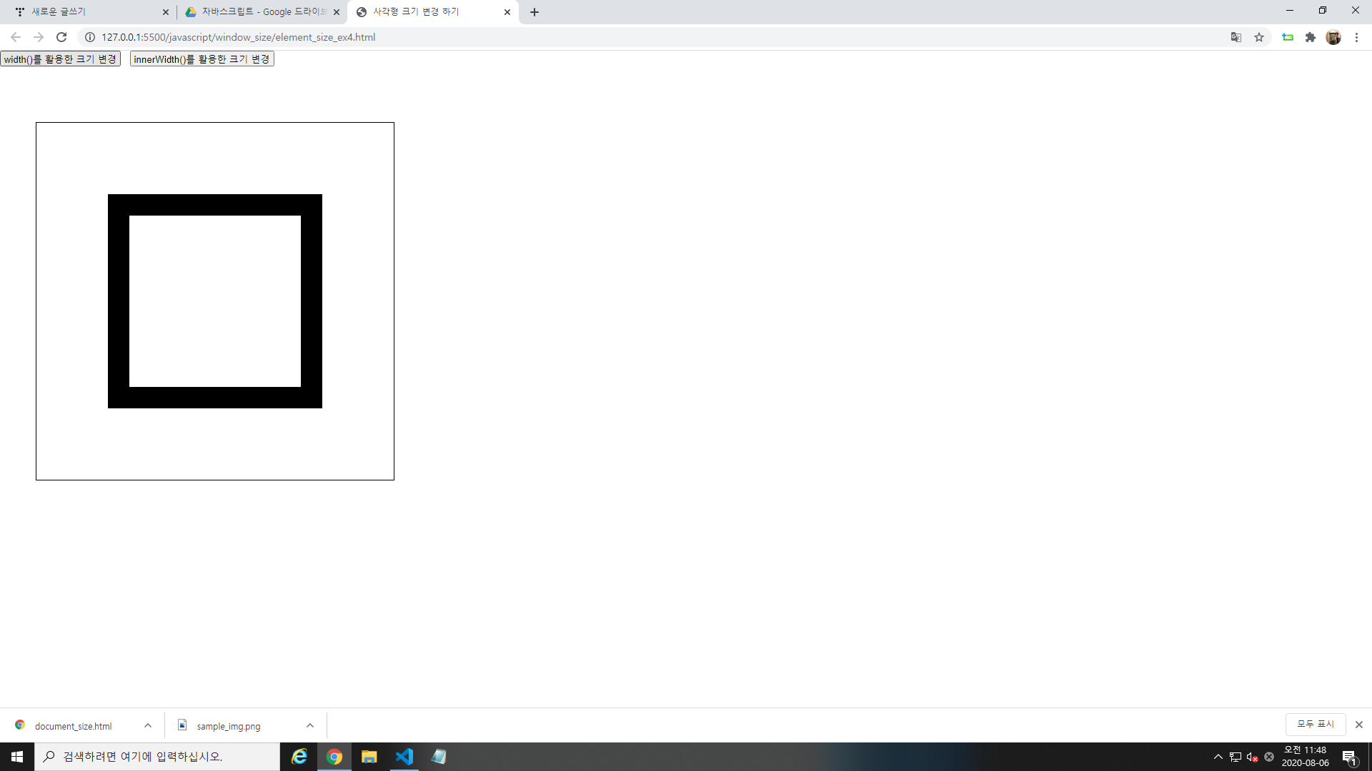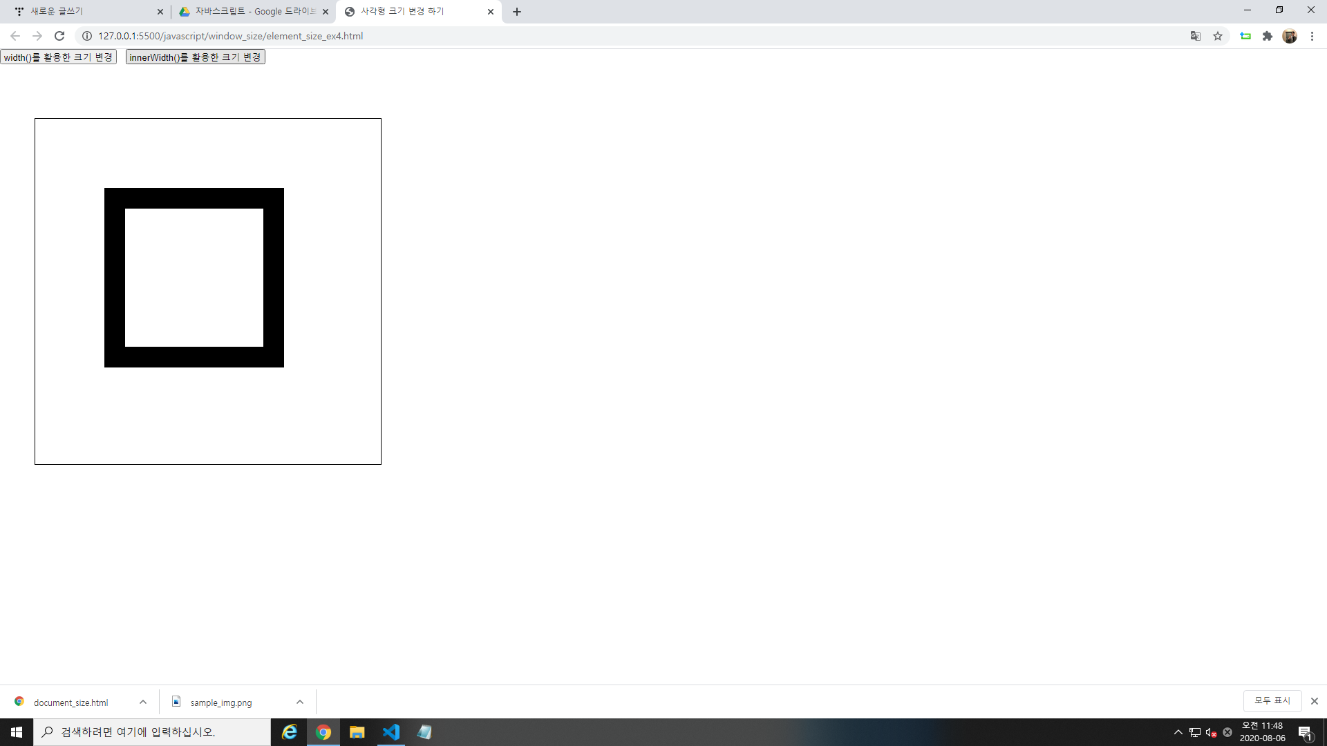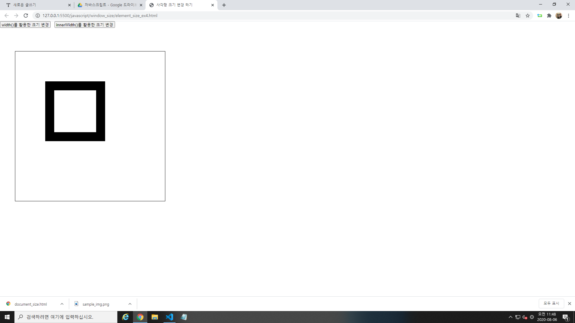 width()와 innerWidth를 활용하여 사각형 크기를 변경해보자.
