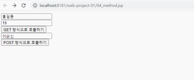 get방식으로 처리되면 url부분에 전송한 정보가 입력되는 것을 볼 수 있다.
