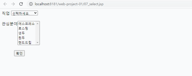 목록에 있는 여러 항목 중에 하나를 선택하거나 여러 개를 선택하는 콤보박스와 리스트 박스는 <select> 태그로 만든다.