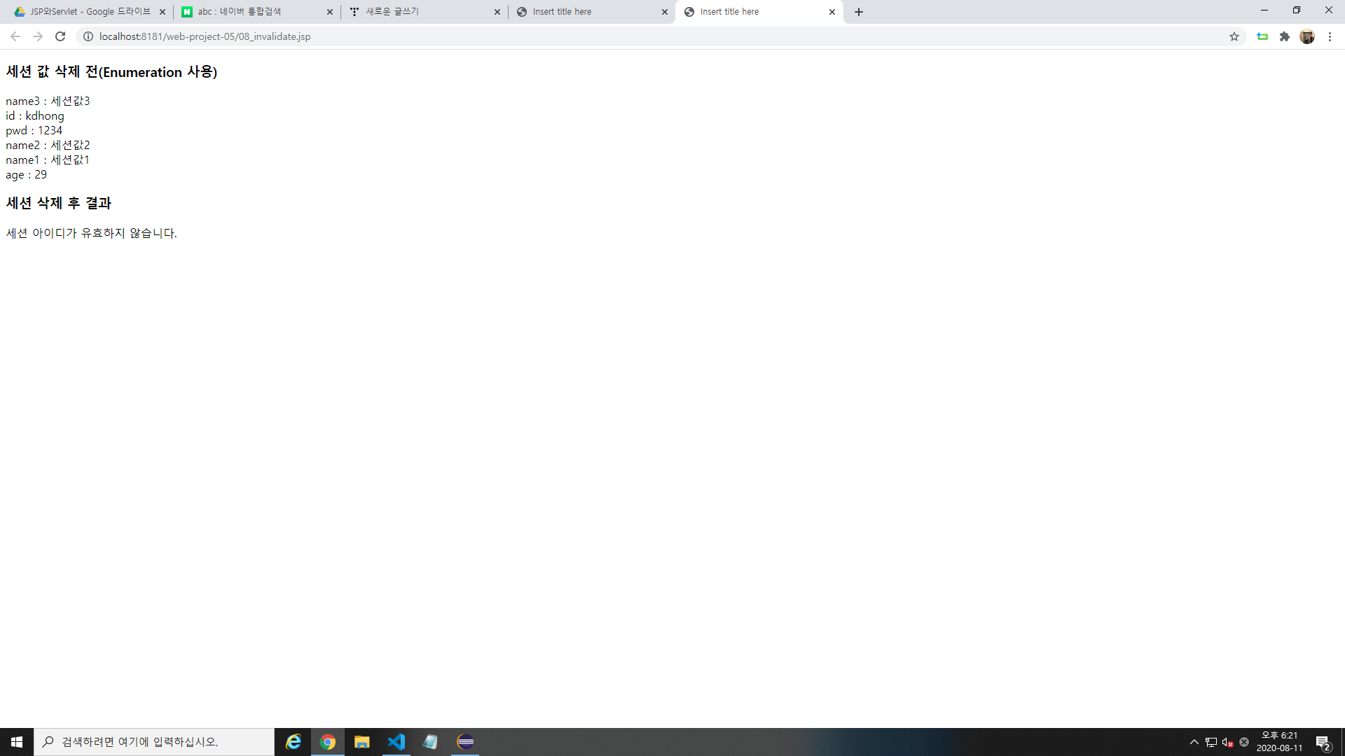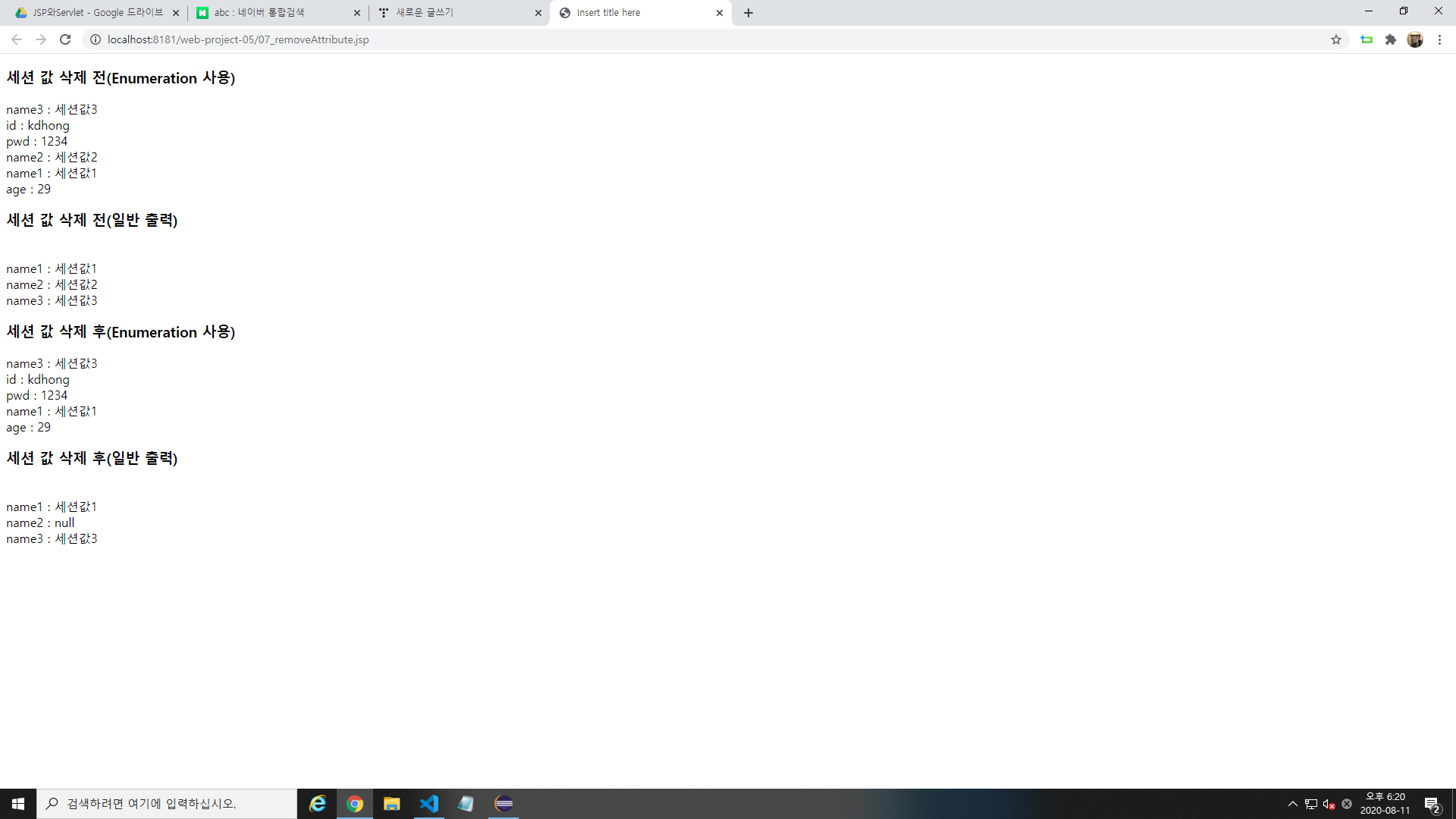| [JSP/Servlet] 세션 전체 지우기 (0) | 2020.08.12 |