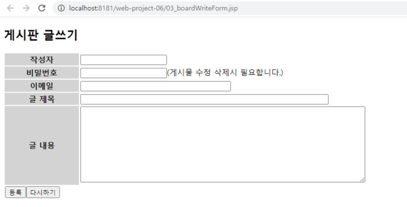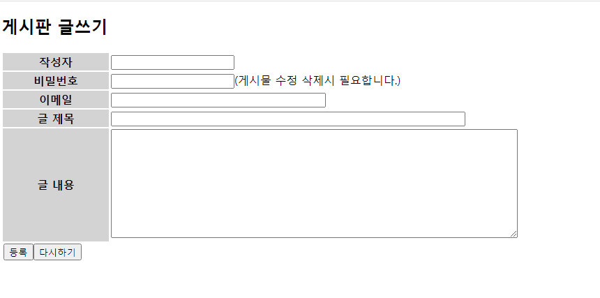 <td><input type="password" name="pass">(게시물 수정 삭제시 필요합니다.)</td>