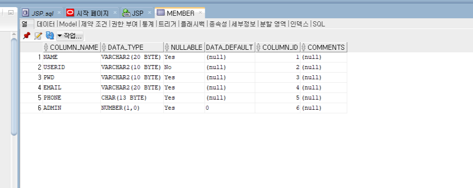 admin number(1) default 0, --0:사용자, 1: 관리자