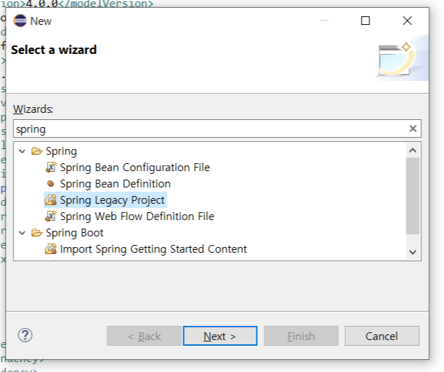 그리고 가장 상위 패키지 이름을 정해주면 스프링 프레임워크 프로젝트 생성이 완료된다.