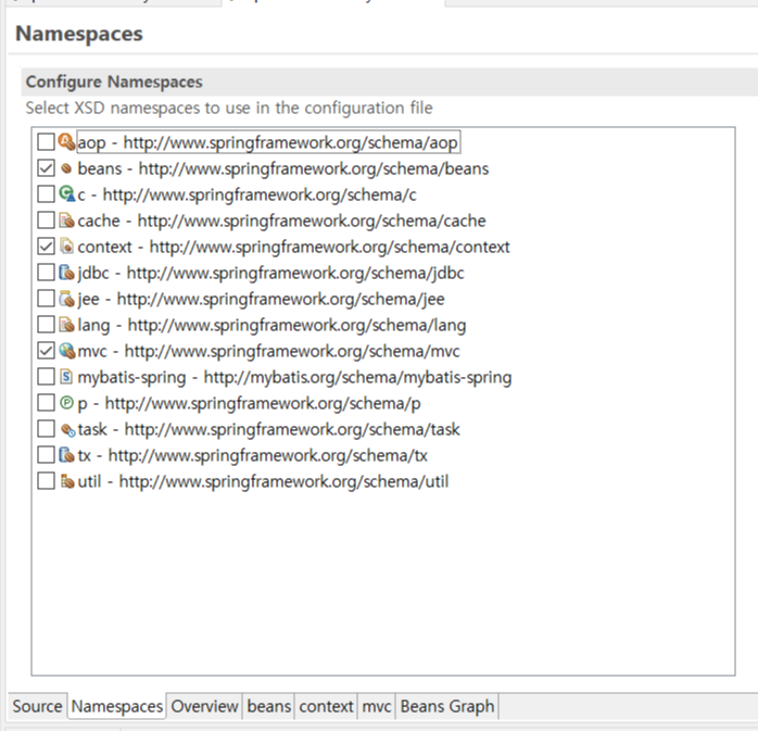 그리고 namespaces 부분에서 우리가 사용할 context랑 mvc 부분을 체크한다.