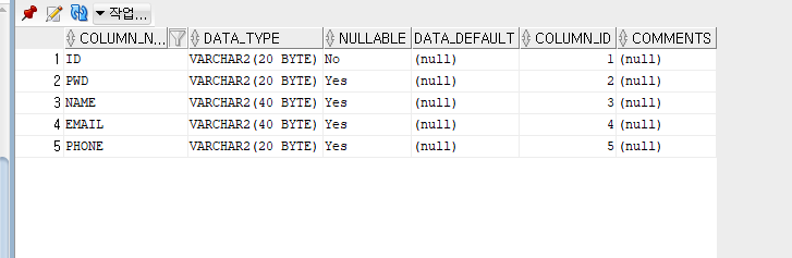 아래와 같은 테이블을 생성한다.