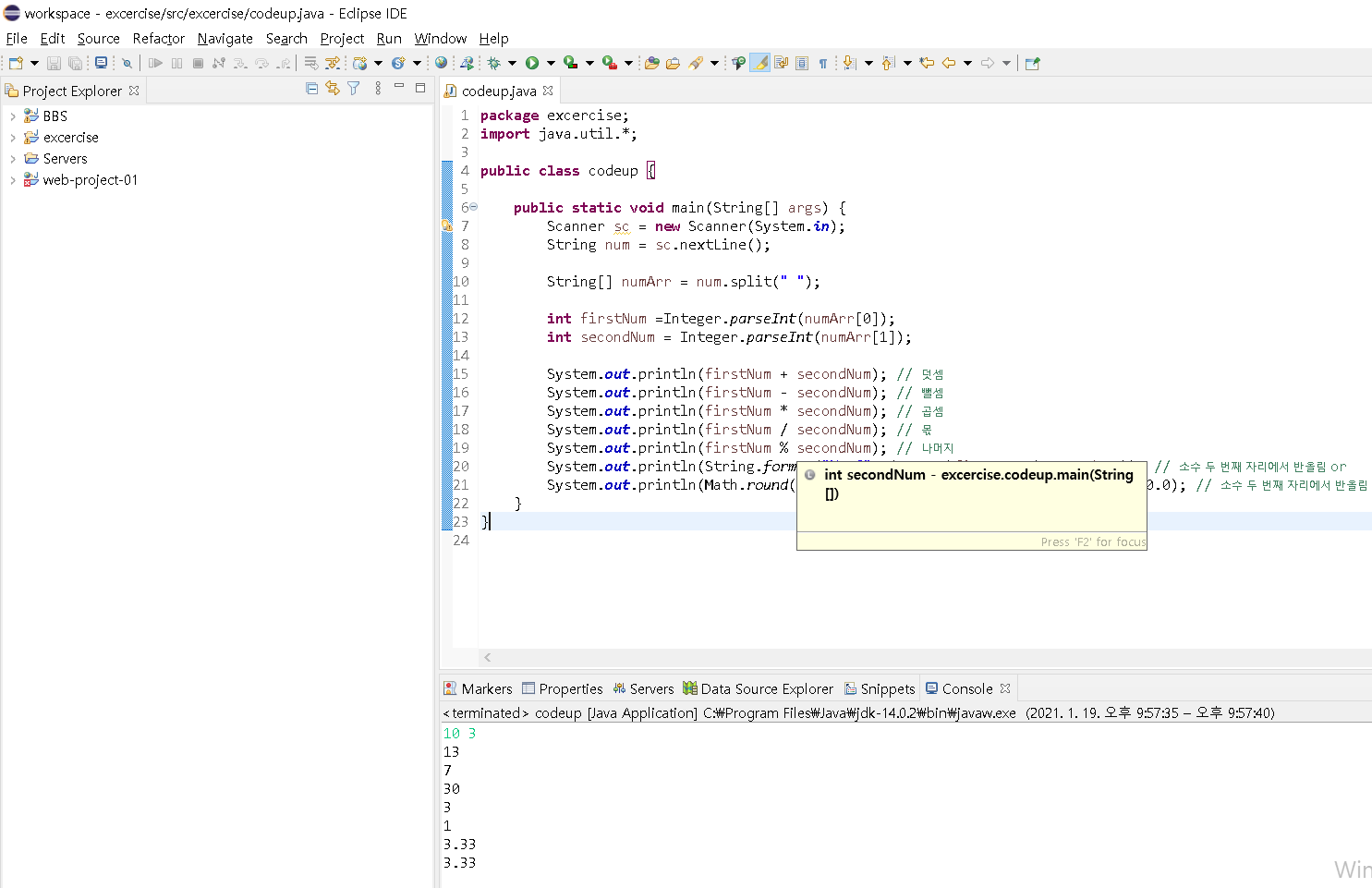 System.out.println(firstNum + secondNum); // 덧셈