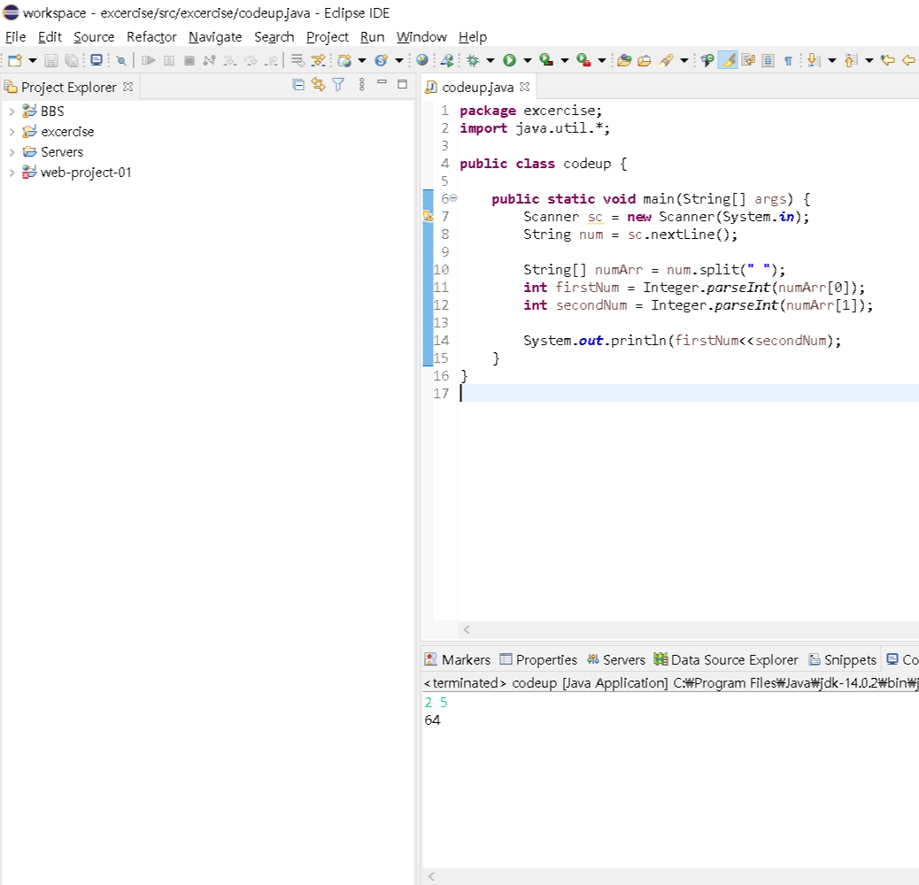 가 입력되면 2 * 2^5 값을 출력하면된다.