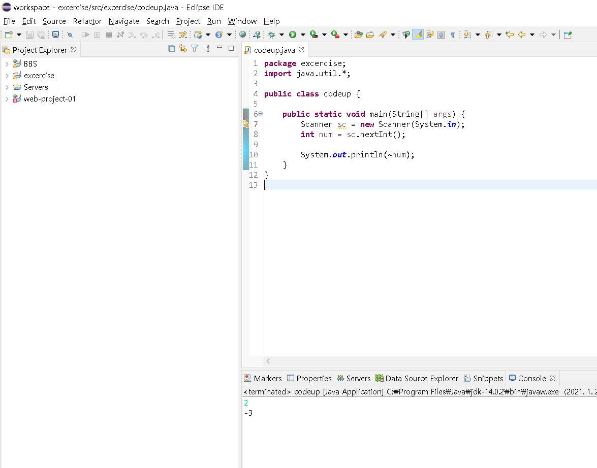 입력 된 정수를 비트단위로 참/거짓을 바꾼 후 정수로 출력해보자.