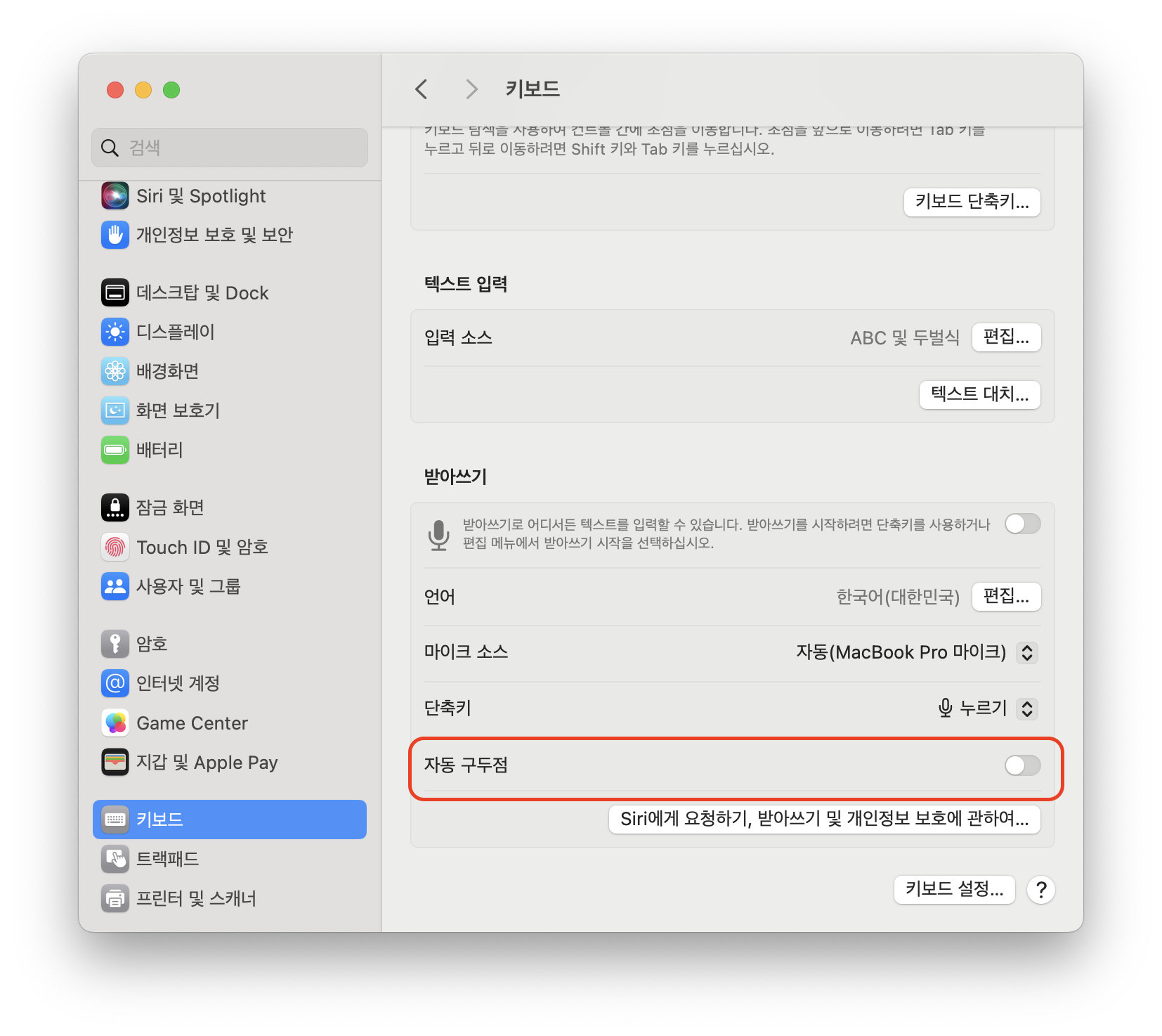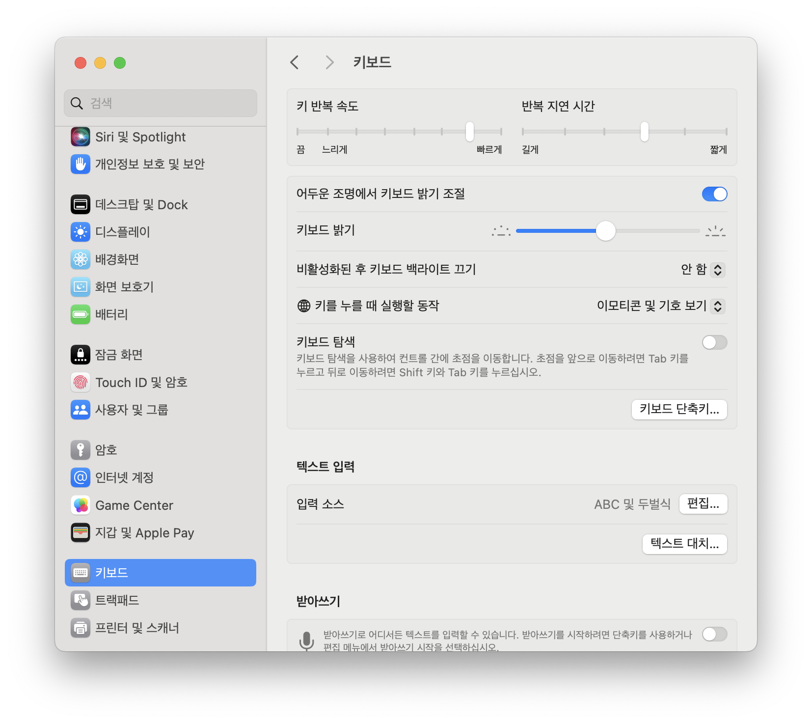 그리고 아래로 내리다보면 키보드 설정이 있다