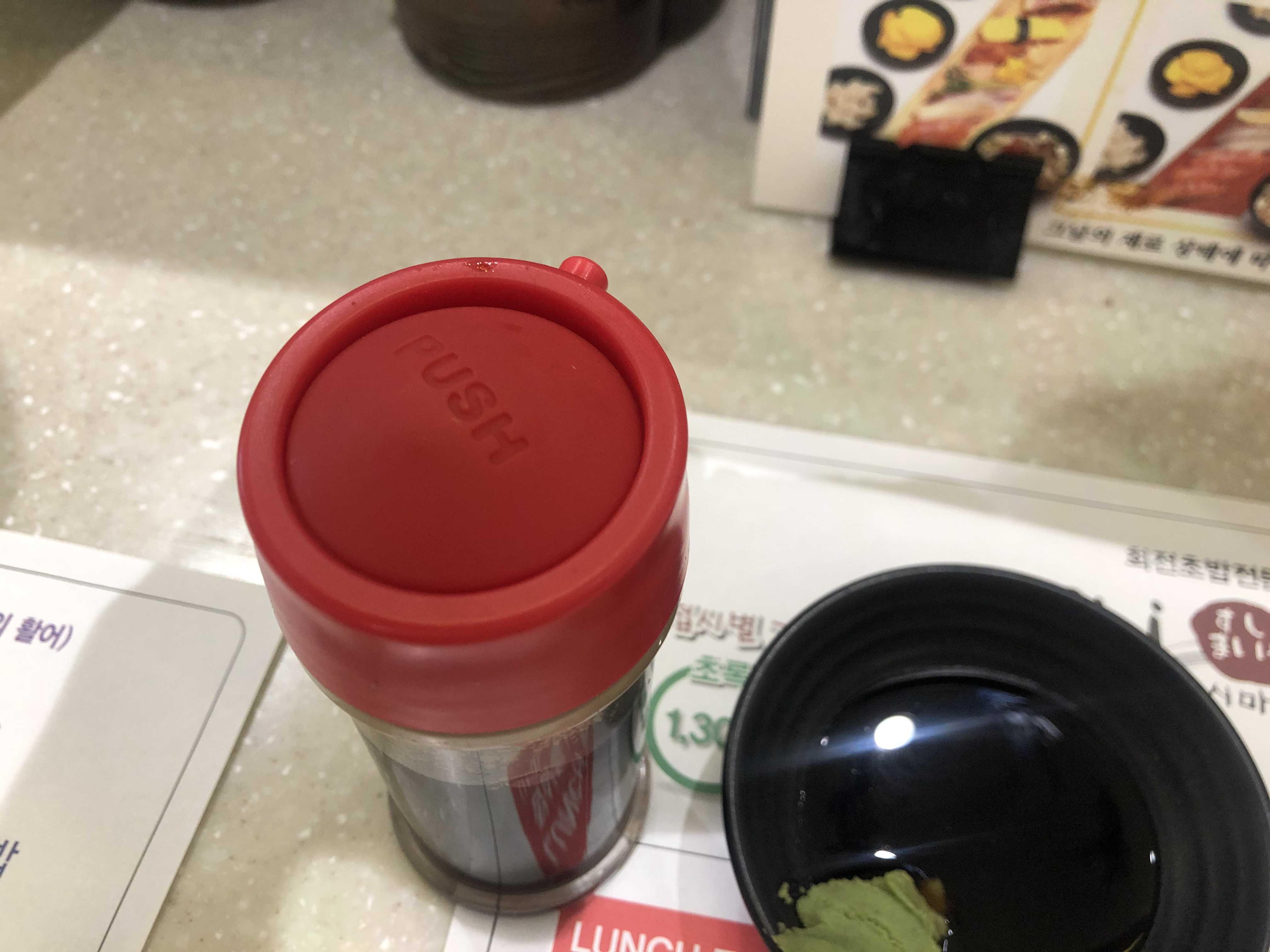윗 부분이 고무로 되어있는데 누르면 간장이 나오는 식입니다.